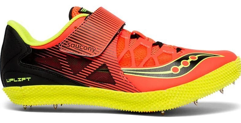 Reach new heights this season in the Uplift HJ II. An ISOFIT stretchable mesh upper with flex film overlays offers unmatched flexibility, breathability and a sock like fit. The Saucony® Uplift HJ 2 track and field shoe has an EVA foam midsole that offers maximum padding for added comfort while an XT-600 carbon rubber outsole with eleven pin full-length nylon spike plate provides the durability and traction to showcase your elite hops.